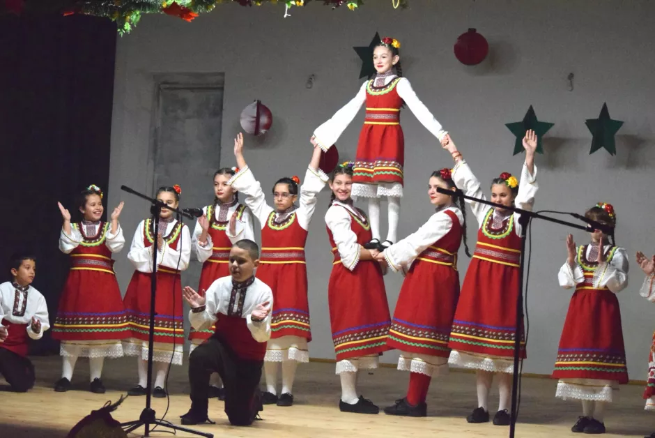 Под бурните овации на публиката първи на сцената се качиха най-малките участници от ДГ „ Мечта “, които извършиха коледната ария „ Зън, зън, зън, кой е вън? “ и трогателни стихчета. След тях фолклорен състав „ Зорница “ показа пъстра танцова стратегия, като за първи път пред аудитория бяха показани северняшкото хоро „ Арканул “ и добруджанското „ Буенек “.