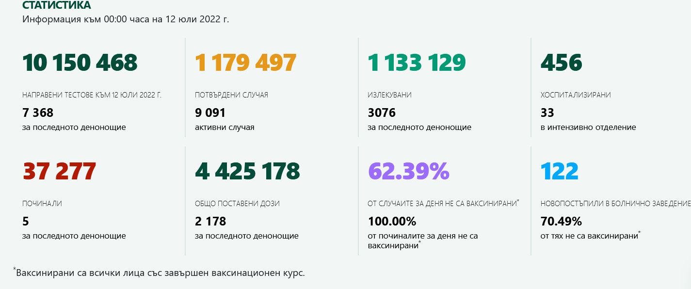 Като излекувани за 24 часа са регистрирани 3 076 души, умряли са петима.