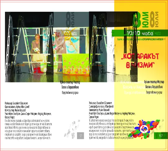 10.00 ч. - Парк на Регионалния исторически музей – „ Котаракът в чизми “ на Куклен спектакъл Мостар, Босна и Херцеговина, зрелище за деца. По известната приказка на Шарл Перо за Котарака в чизми, който оказва помощ на притежателя си от дрипльо да стане един от най-богатите хора в кралството и да се ожени за принцесата.