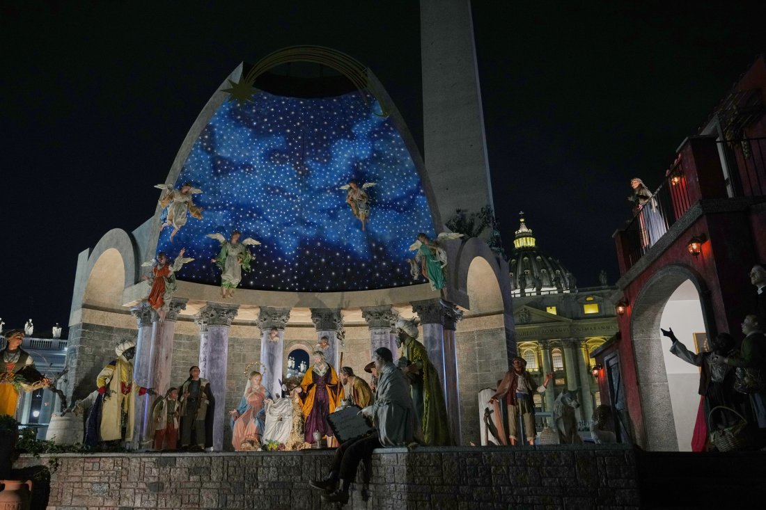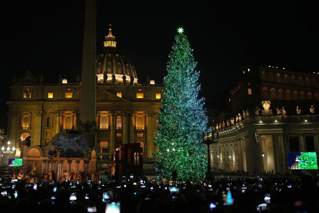 10 дни преди Коледа на площад " Свети Петър " във Ватикана бяха осветени коледното дърво и обичайна Рождественска сцена.
