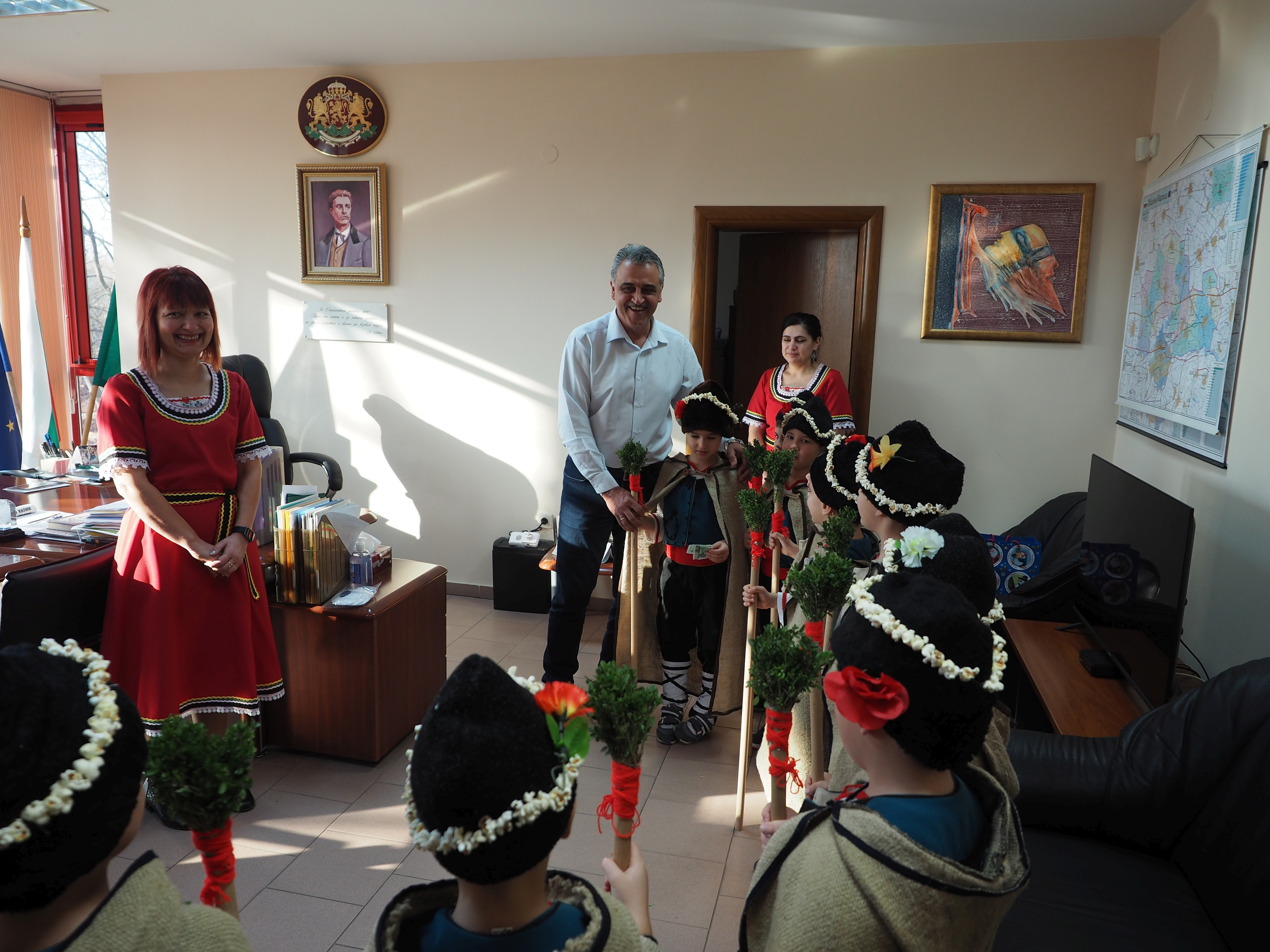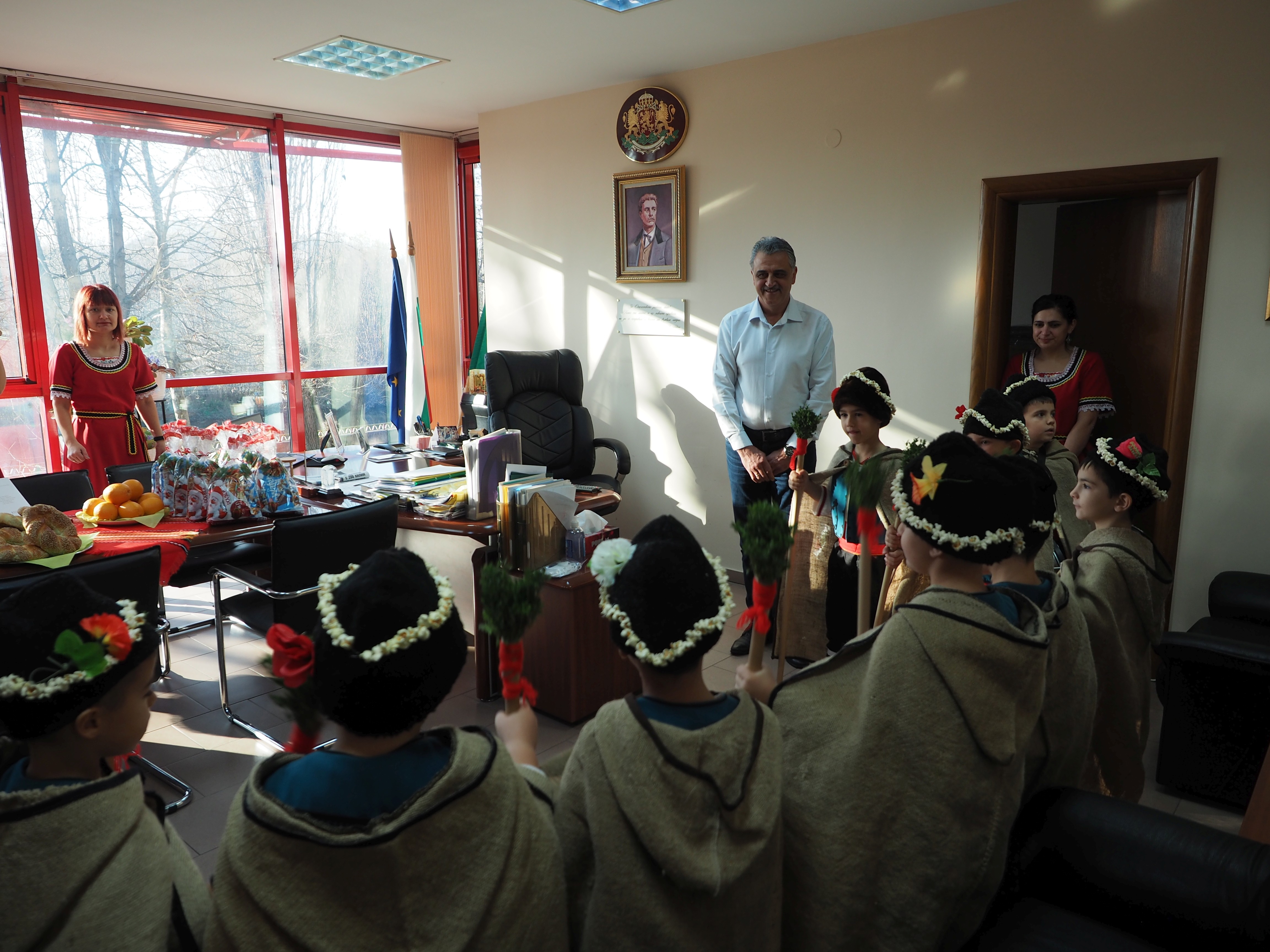 Коледарчетата сурвакаха първо градоначалника, който им благодари за празничното въодушевление, което са донесли.