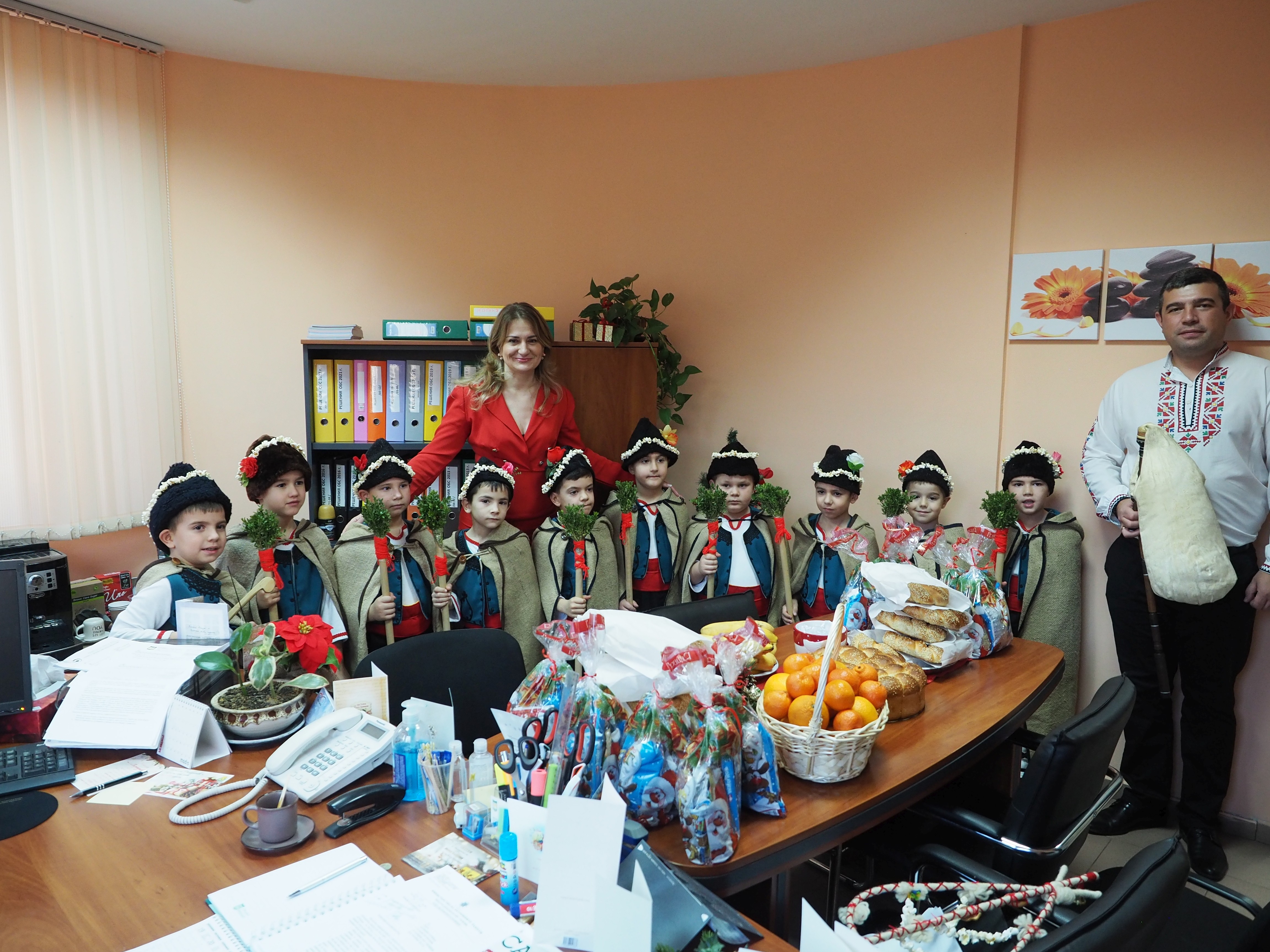 Председателят на Общинския съвет Гергана Трендафилова също посрещна дребните коледари в кабинета си.