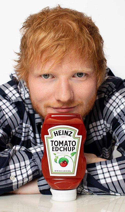 Британска звезда, която отбеляза 30-тия си рожден ден по-рано тази година, не може да си представи живота без кетчуп Heinz. Толкова много го обича, че си е направил татуировка с популярния доматен сос. Не е изненада, че дори ръководителите на компанията забелязват възхищението на Ед Шийрън и със съгласието на изпълнителя на „ Shape of You “ пускат лимитирана серия Edchup, а върху някои бутилки дори отпечатват татуировките на Ед.