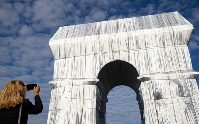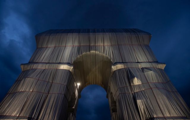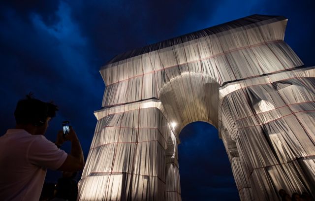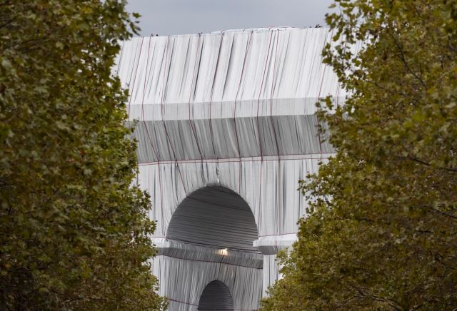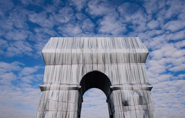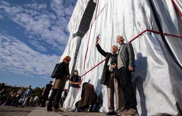 Опакованата по проект на Кристо Триумфална арка в Париж е отворена за посетители през идните две седмици. Обичайно за творбите на Кристо, това стана без фанфари, речи, политици. Без трикольорна лента, тръпнеща да бъде почетена от ритуалната ножица. В обявения час на откриването тълпа посетители нетърпеливо пристъпва пред оградата. Добре дошли са, безплатно, както при всички предишни творби на Кристо и Жан Клод, за които творците, по собствените им думи, взимат назаем от общото пространство.