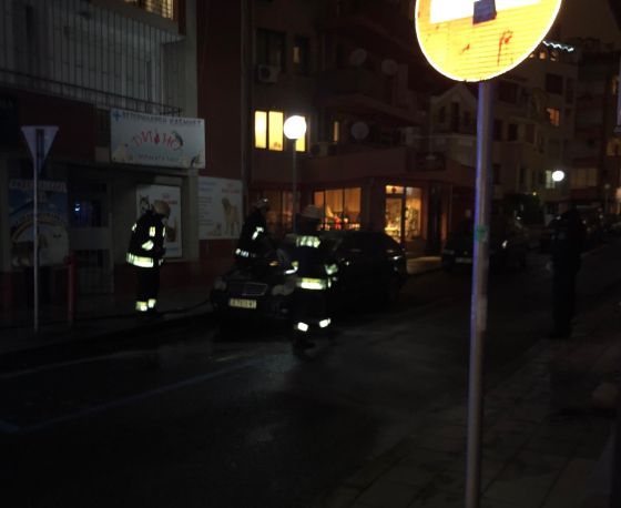 Пожарникари гасят " Мерцедес " в центъра на Бургас. Леката кола избухнала в пламъци вероятно заради повреда в електрическата инсталация. Toва предаде " Флагман ".