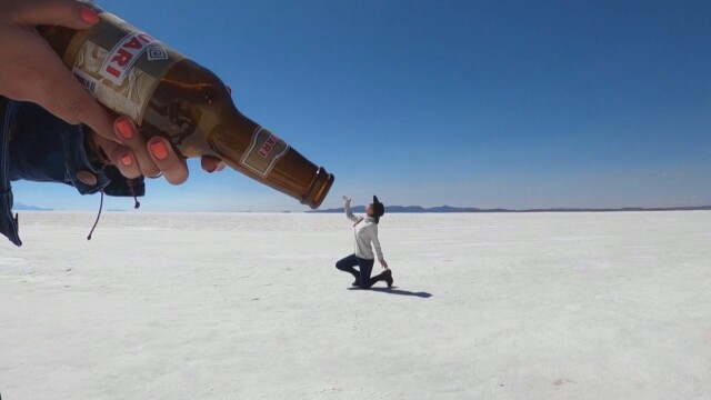 С малко игра с вероятността Питер Кондори прави изобретателни фотографии на посетителите на солниците край езерото Салар де Уюни.