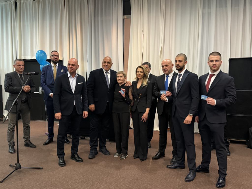 Лидерът на ГЕРБ Бойко Борисов, заместник-председателят на партията Томислав Дончев и националният представител Рая Назарян връчиха картите на най-младите и най-възрастния от новите членове.