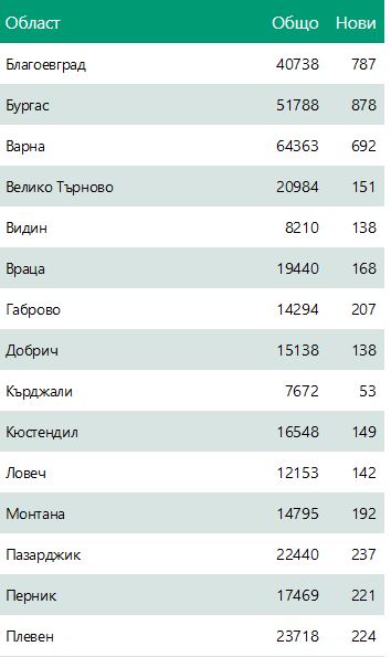 Най-много новозаразени има в София – 3320, минимум са те в Разград, едвам 37.