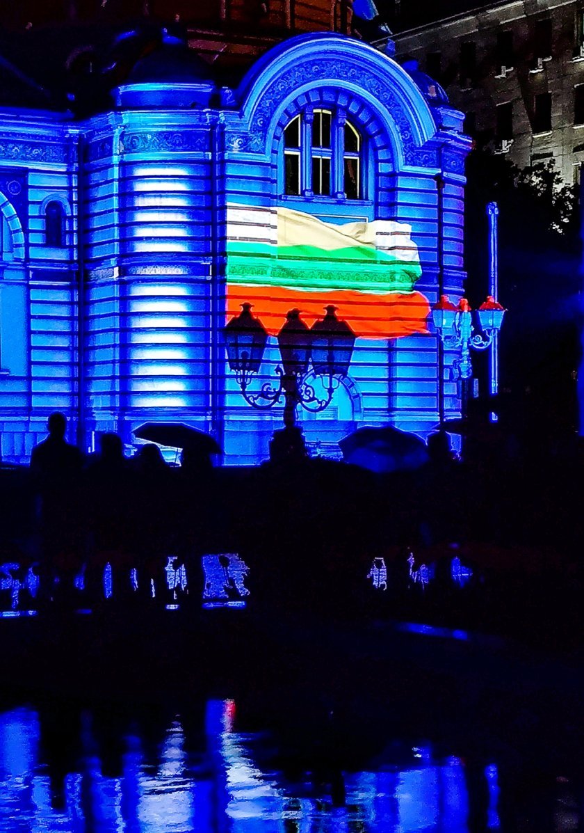 09.05.2023 - С 3D мапинг шоу на фасадата на Централната баня София се причисли към отбелязването на Деня на Европа. За сцена на спектакъла " Заедно " бе определена фасадата на Регионалния исторически музей. Историята за общочовешките полезности, върху които е построен Европейският съюз споделя изкуствен интелект.