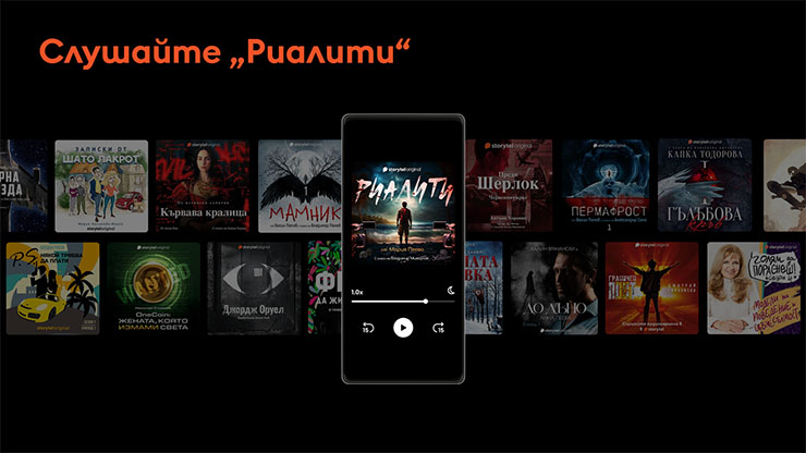 „ Риалити “ е следващият Storytel Originals аудиосериал на български създател, който е основан като автентично наличие за платформата. През последните години това се потвърди като сполучлив модел, който се харесва и търси от българската аудитория. Убедителен образец за това е аудиосериалът „ Мамник “ на Васил Попов, който завоюва първия у нас конкурс за аудиосериали, проведен от Storytel. Той е едно от най-търсените и слушани заглавия, а в следствие мистичната мрачна история бе издадена и като типичен разказ и се трансформира в една от най-продаваните книги за предходната година.„ Аудиосериалът „ Мамник “ е живото доказателство за това, че аудио форматите могат да сложат началото и да отворят пътя за надарени нови български създатели към необятната аудитория и да им помогне да доближат до нея и през слушане, и през четене. Други български аудио поредици пък бяха преведени на разнообразни езици и са част от наличието на Storytel в други страни. Вярваме, че „ Риалити “ и Мария Пеева имат същия капацитет “, разяснява Ана Клисарска, издател на Storytel.Любопитните могат да чуят свободно фрагменти от новия аудиосериал. Ако прекарването им хареса, могат да се възползват и от опцията за 3-месечен абонамент с достъп до 500 000 аудио и е-книги и 5000 заглавия на български за 6,50 лева на месец.