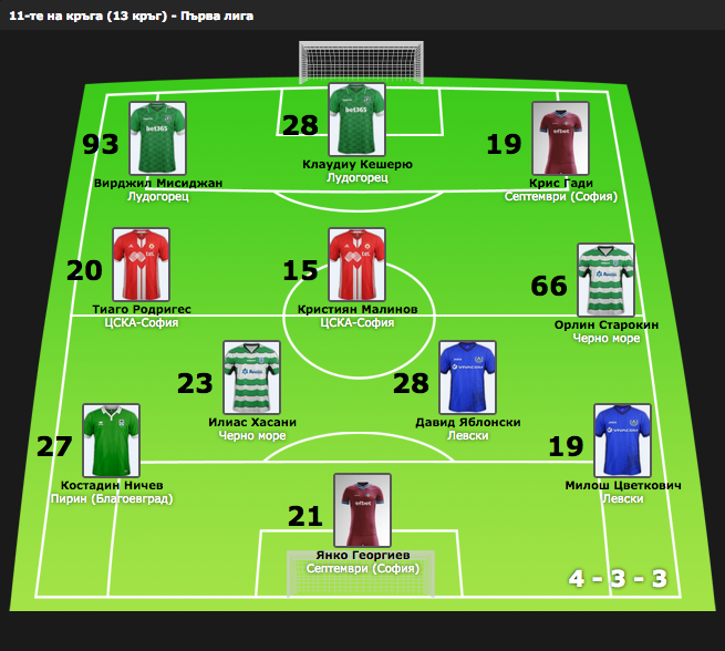 Идеалният отбор на Първа лига за изминалия кръг