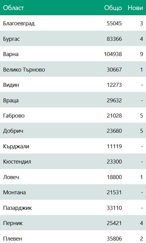 Няма умряли с ковид за последното денонощие. Отчетените като излекувани за същия интервал са 23.