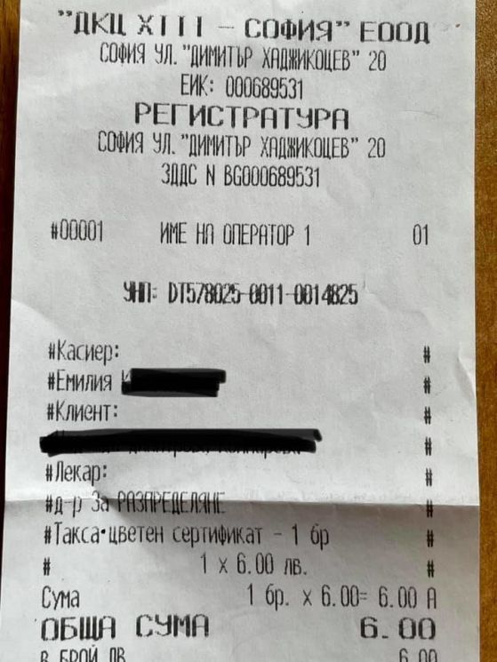Но 13. ДКЦ е по този начин леко замижало, като е добавило думата ЦВЕТЕН документ. И не те пита искаш или не искаш, а по познатия модел: " платете тук 6 лв. за документ ", те принуждават. Дори издават касова записка за тези 6 лв.: такса пъстър документ - 1 бр. е 6 лв., а 2 бр. 10.