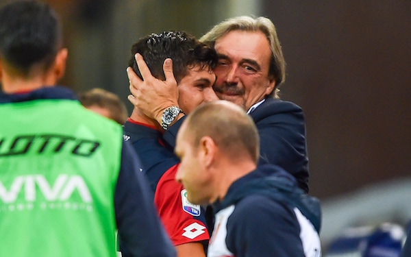 Genoa's 16 years old Pellegri scored 2 tonight. And this is his dad, Genoa's assistant,crying while sitting on bench pic.twitter.com/tNFkG0El95