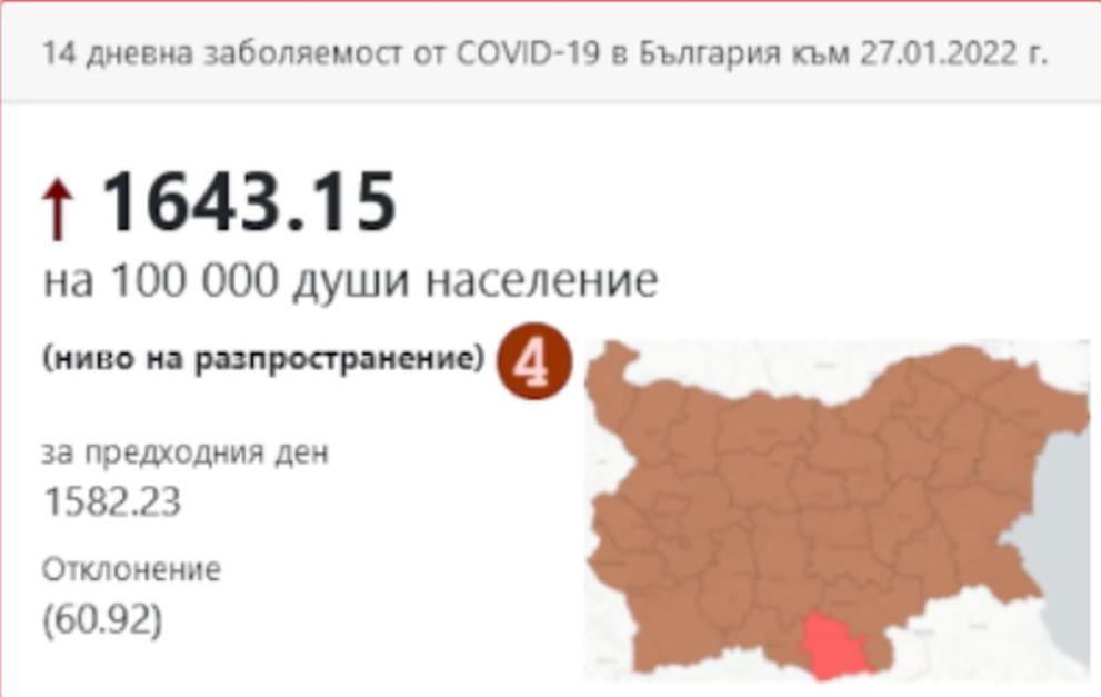 1643.15 на 100 хиляди души население доближи 14-дневната заболеваемост от COVID-19 в страната, демонстрират данните на Националния център по заразни и паразитни заболявания.