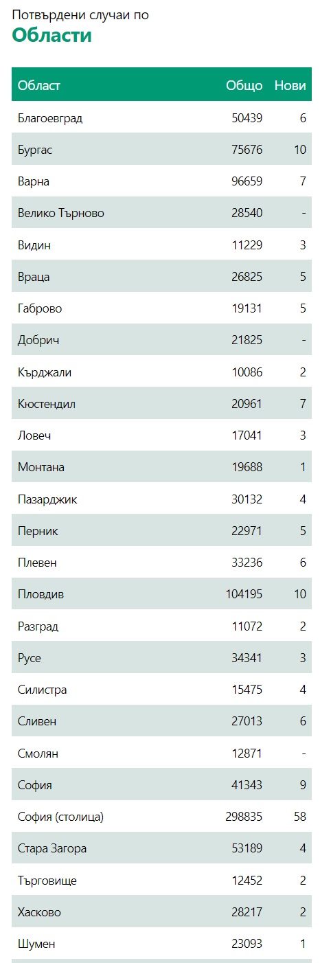 45 са новопостъпилите с Ковид-19 в болнични заведения. Общият брой на приетите в болница е 412. В интензивно поделение са 38. За миналите 24 часа са сложени 610 ваксини.