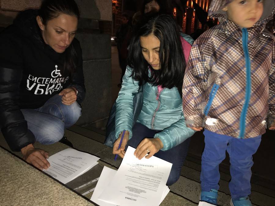 Междувременно във Фейсбук страницата на самодейността “Системата ни убива” майките качиха написана от самите тях оставка на Симеонов и приканиха всеки, които желае, да я подпише. Документът се разпространяваше и по време на акцията под прозорците на властта.