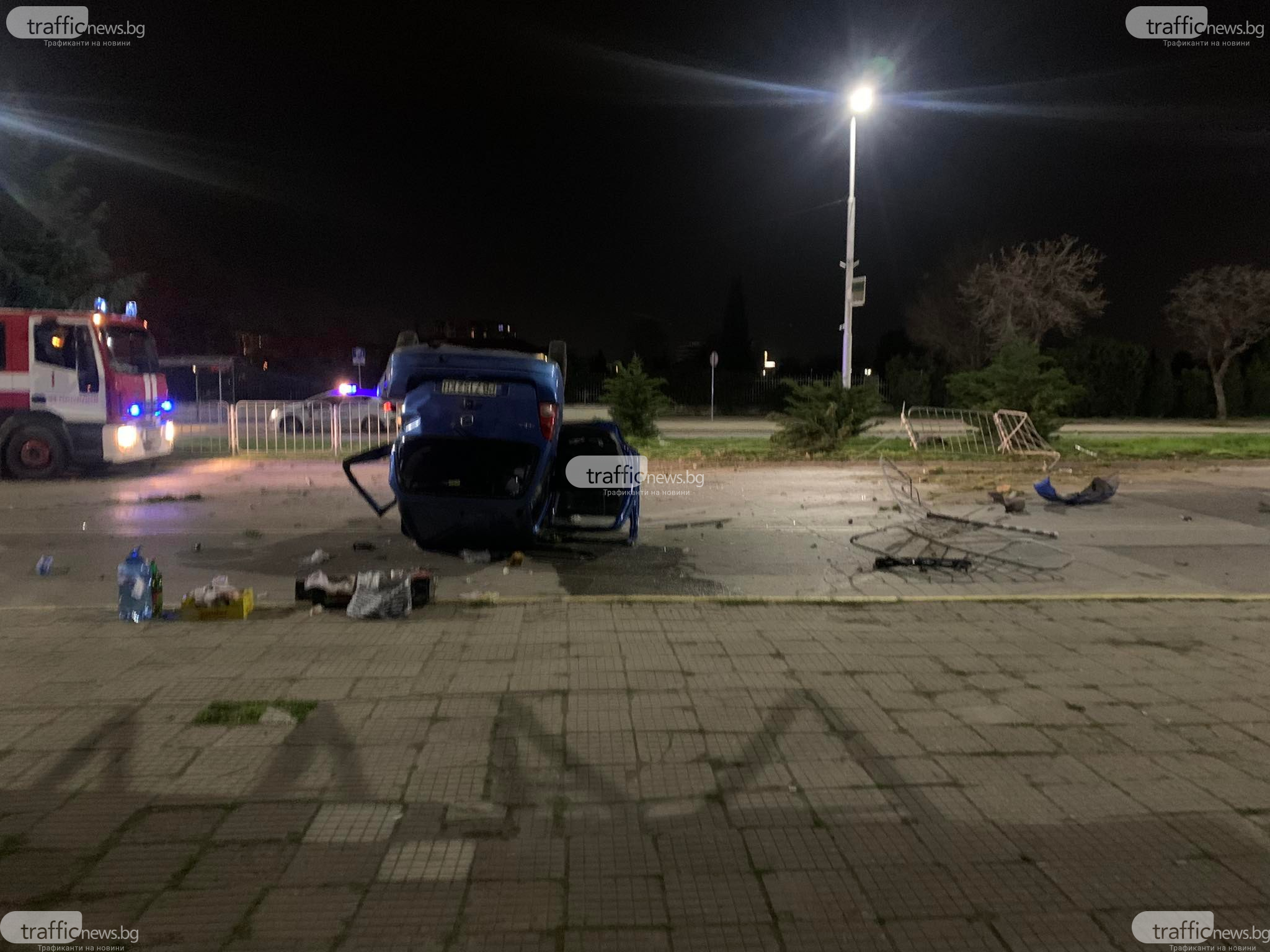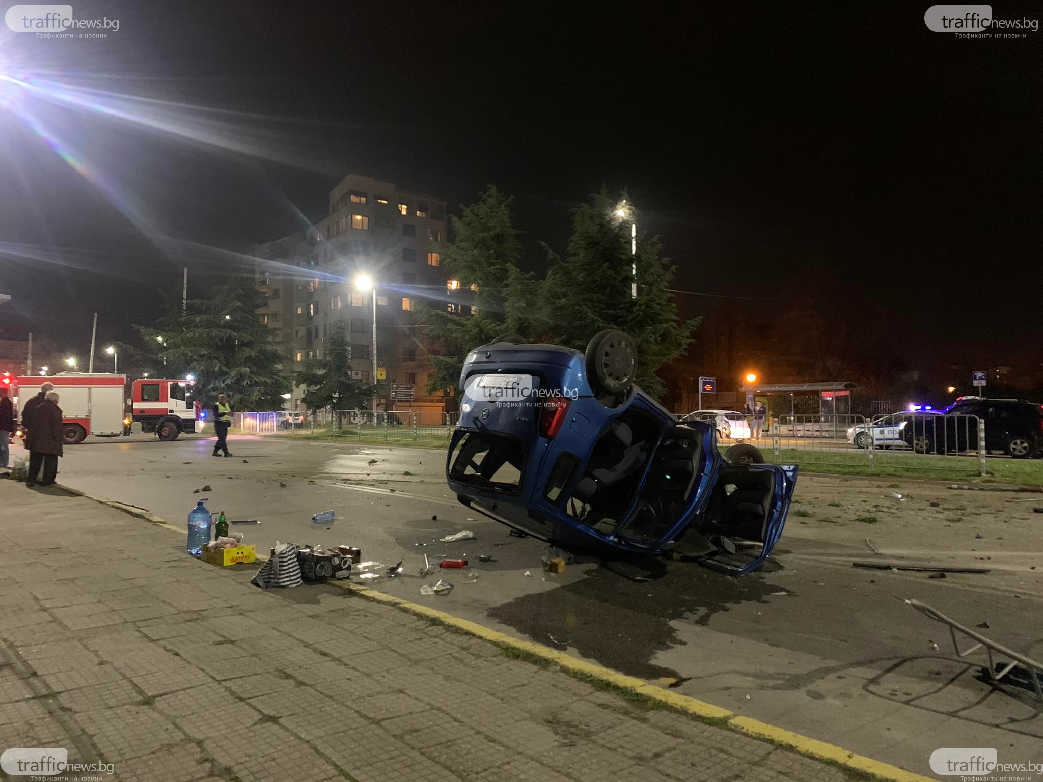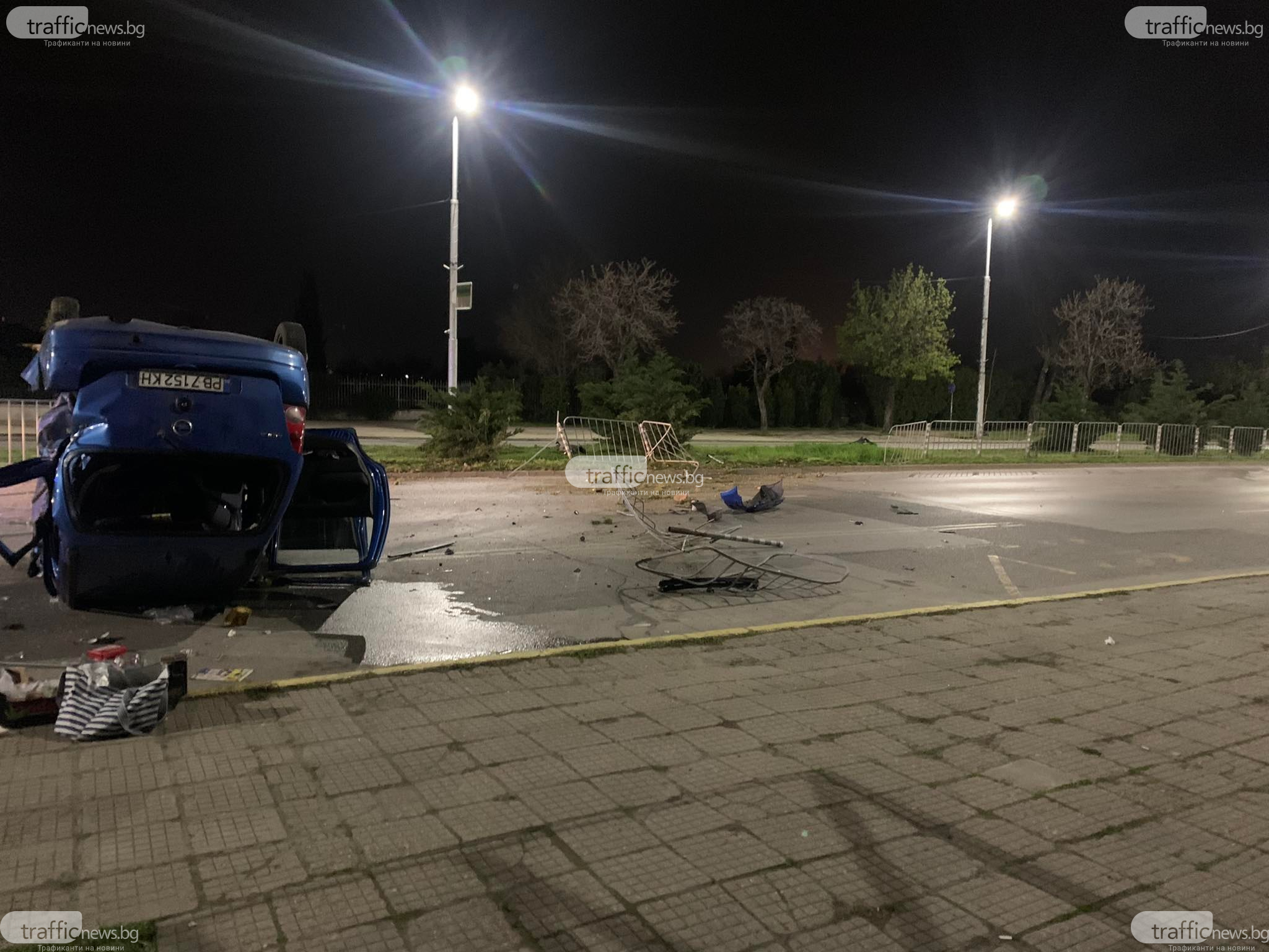 Шофьорът се е движил с гневна скорост по булеварда от кв. " Изгрев " в посока центъра на града. В региона малко преди кръстовището с бул. " Източен " младежът блъска автомобил, завърта се, минава през мантинелите и в насрещното удря наследник автомобил. Лъскавото возило се врязва и в тротоара, където стопира на метри от спирка на градския превоз. Като по знамение няма потърпевши пешеходци. Предницата на първокласното возило е размазана.