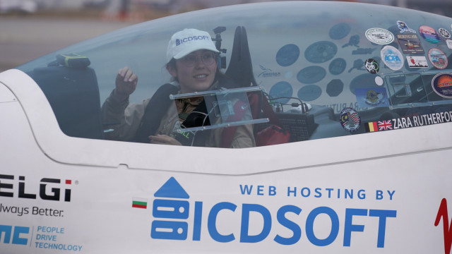 19-годишната Зара Ръдърфорд, която се пробва да се трансформира в най-младата жена със независим полет към света, кацна на летище София след три часа полет от остров Крит.
