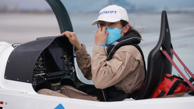 Самолетът, с който прави своята обиколка на света е дребен и лети на ниска височина, като не навлиза във и над облаците.