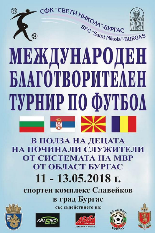 19 тима ще вземат присъединяване в 9-ото издание на Благотворителния шампионат по футбол за полицейски тимове за Купата Свети Никола в Бургас. И тази година надпреварата е с интернационално присъединяване, а събраните средства ще бъдат предадени в интерес на деца на починали чиновници от системата на Министерство на вътрешните работи.