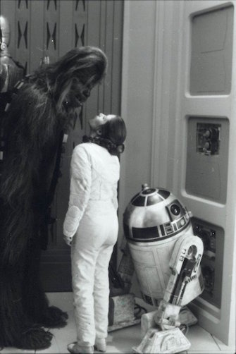 George Lucas and Carrie Fisher on the set of Star Wars, 1977