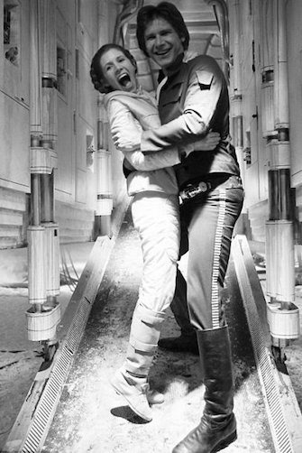 Carrie Fisher and Mark Hamill on the set of Star Wars directed by George Lucas, 1977