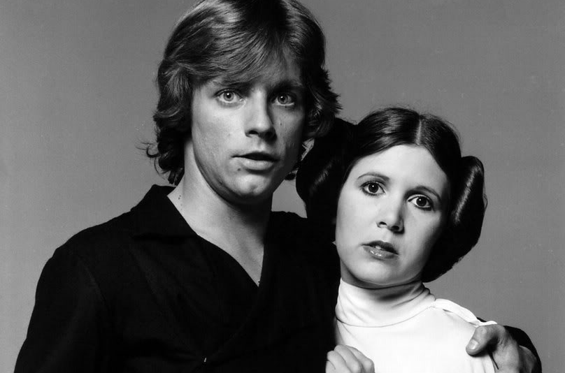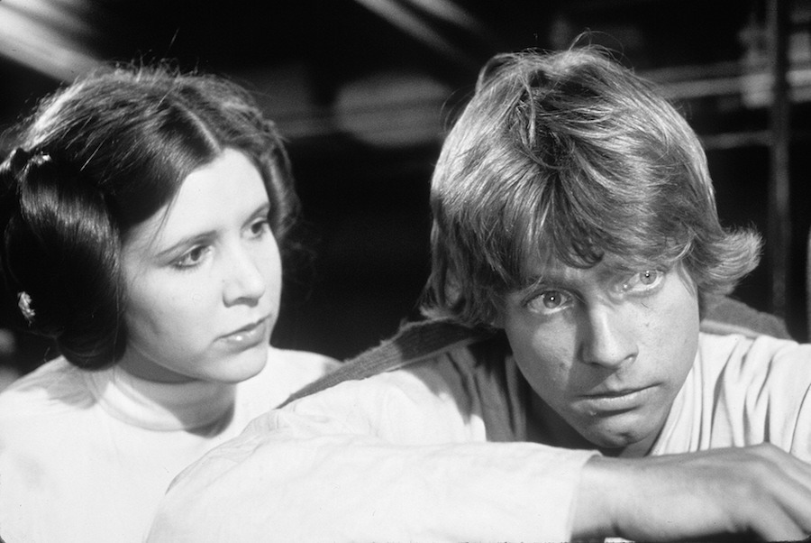 Mark Hamill and Carrie Fisher for Star Wars directed by George Lucas, 1977