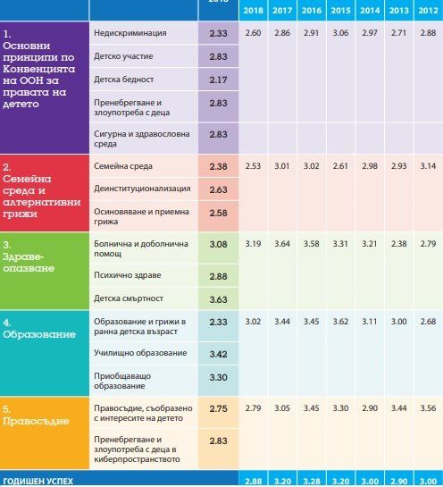 2,88 е оценката на страната съгласно отчета „ Бележник 2018: Какъв е междинният триумф на страната в грижата за децата? ", направен от Национална мрежа за децата. Това е най-ниската оценка, която институциите получават за работата и политиките си, засягащи децата, от началото на правенето на отчета преди 7 години.