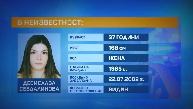 20 години и 4 месеца тъкмо толкоз Десислава Севдалинова от Видин е в. Дело има, само че резултати липсват. Неясно остава дали момичето е убито или отвлечено за секс робиня.
