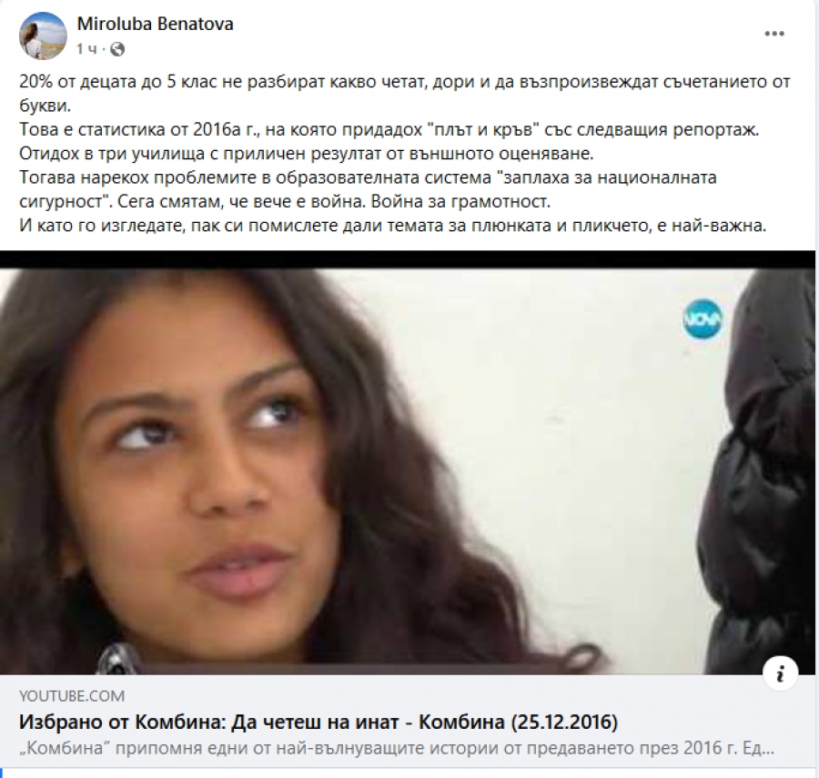 " 20% от децата до 5 клас не схващат какво четат, даже и да възпроизвеждат съчетанието от букви.