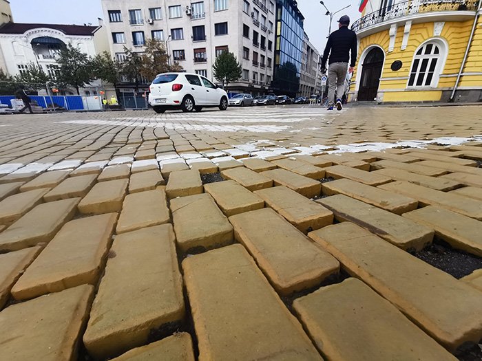 Пренареждането на жълтите павета по бул. „ Цар Освободител “, в сектора от бул. „ Васил Левски “ до Българска академия на науките, е част от плана за възобновяване на централната градска част. Площта му е под 1,5% от всички планувани за ремонт площи в зоната, а цената му по контракт е 204 хиляди лева