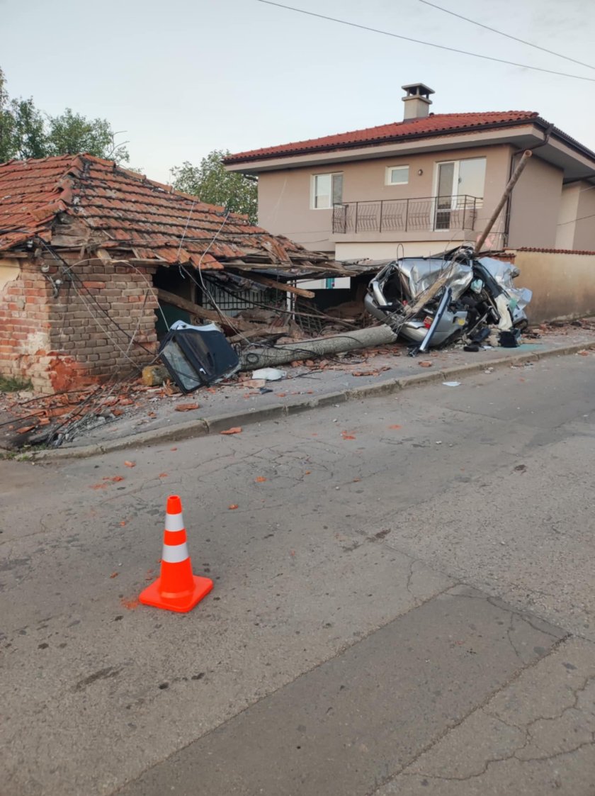 На косъм от трагедия: Дрогираният млад шофьор, отнесъл стълб и постройка в Доброславци, е пуснат за домашно лечение