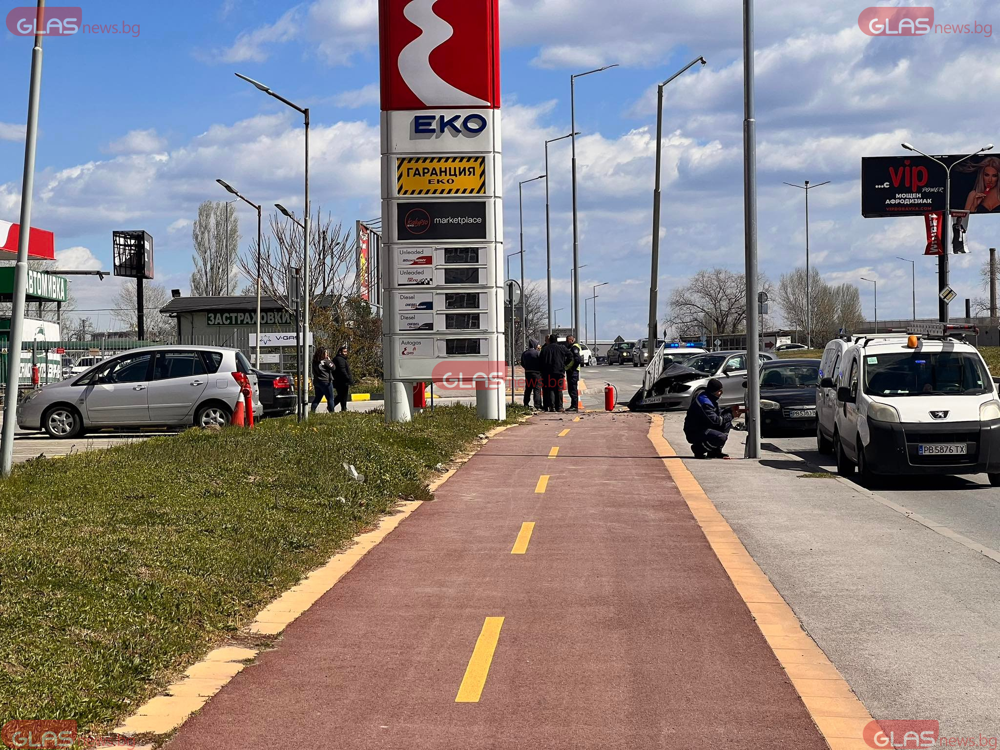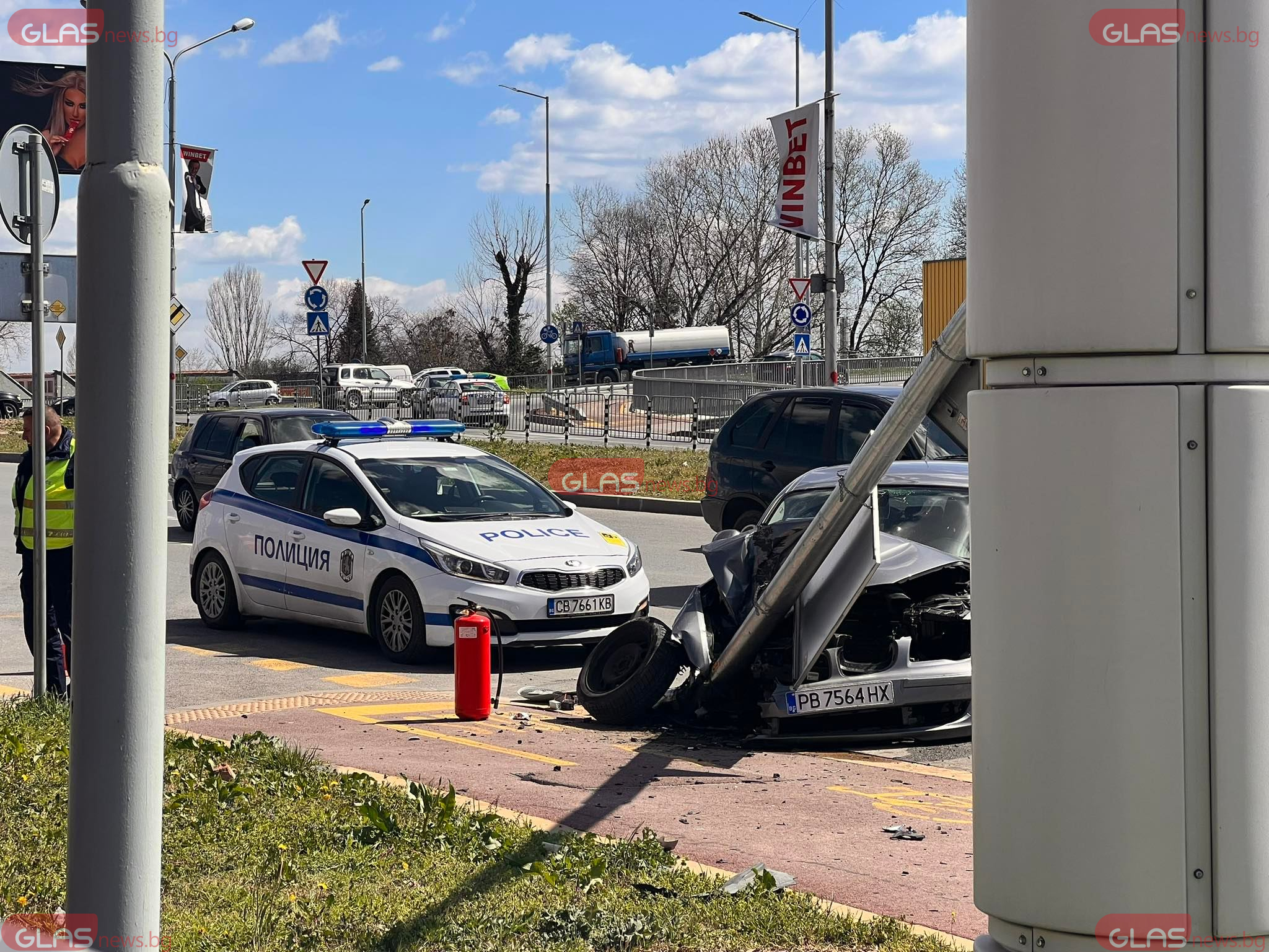 Млада шофьорка се заби в стълб, в болница е СНИМКИ