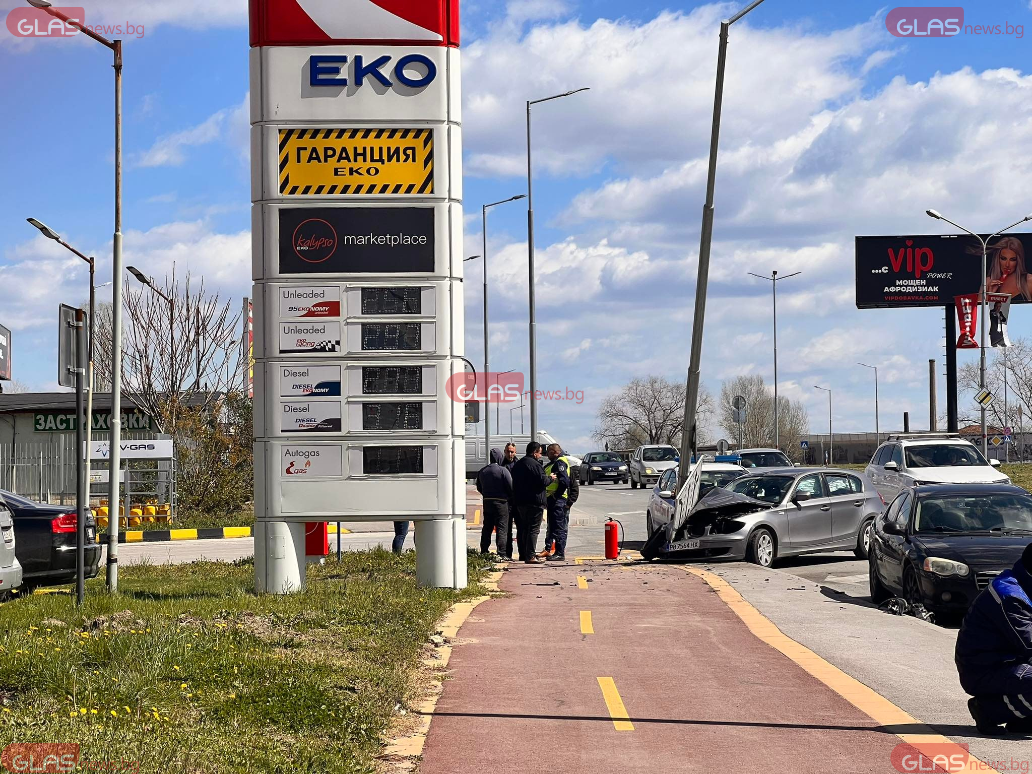 23-годишна шофьорка е откарана в болница, откакто се е блъснала с " БМВ " -то си в дирек на бул. " България " в Пловдив. Сигналът е получен след 13 ч. през днешния ден.