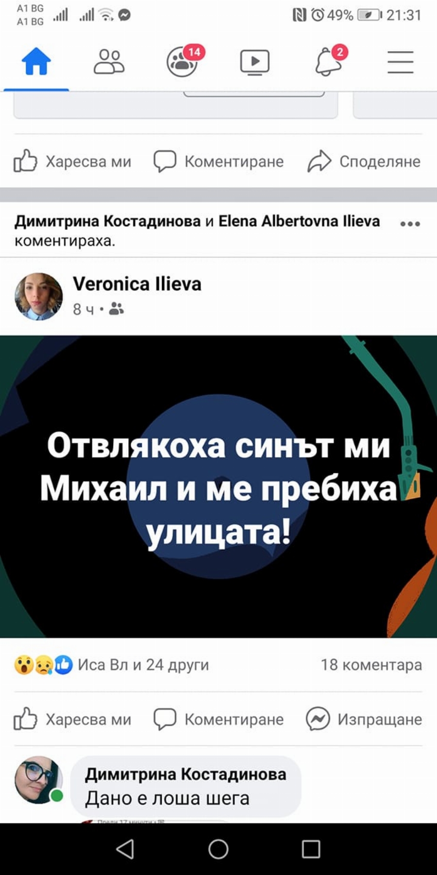 Самата тя е писала необичайно известие в мрежата - че са отвлекли сина ѝ Михаил, а нея са я пребили на улицата.