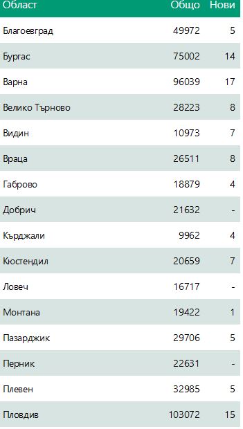 Общо доказаните случаи на ковид досега са 1 149 225. От тях 163 942 са дейни.