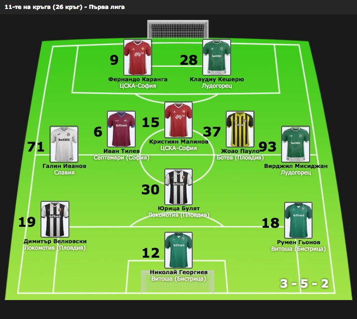 Кристиян Малинов (ЦСКА-София) - XIII, XXIII, XXVI