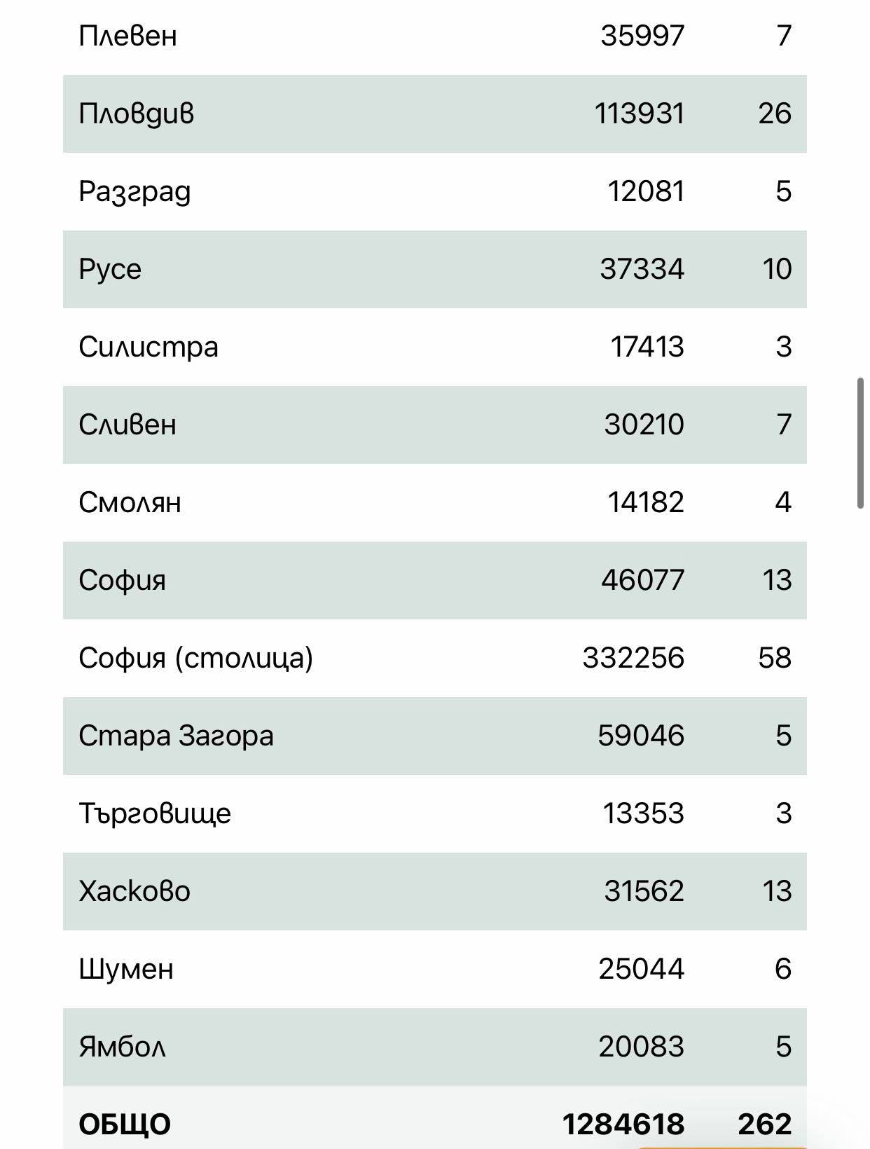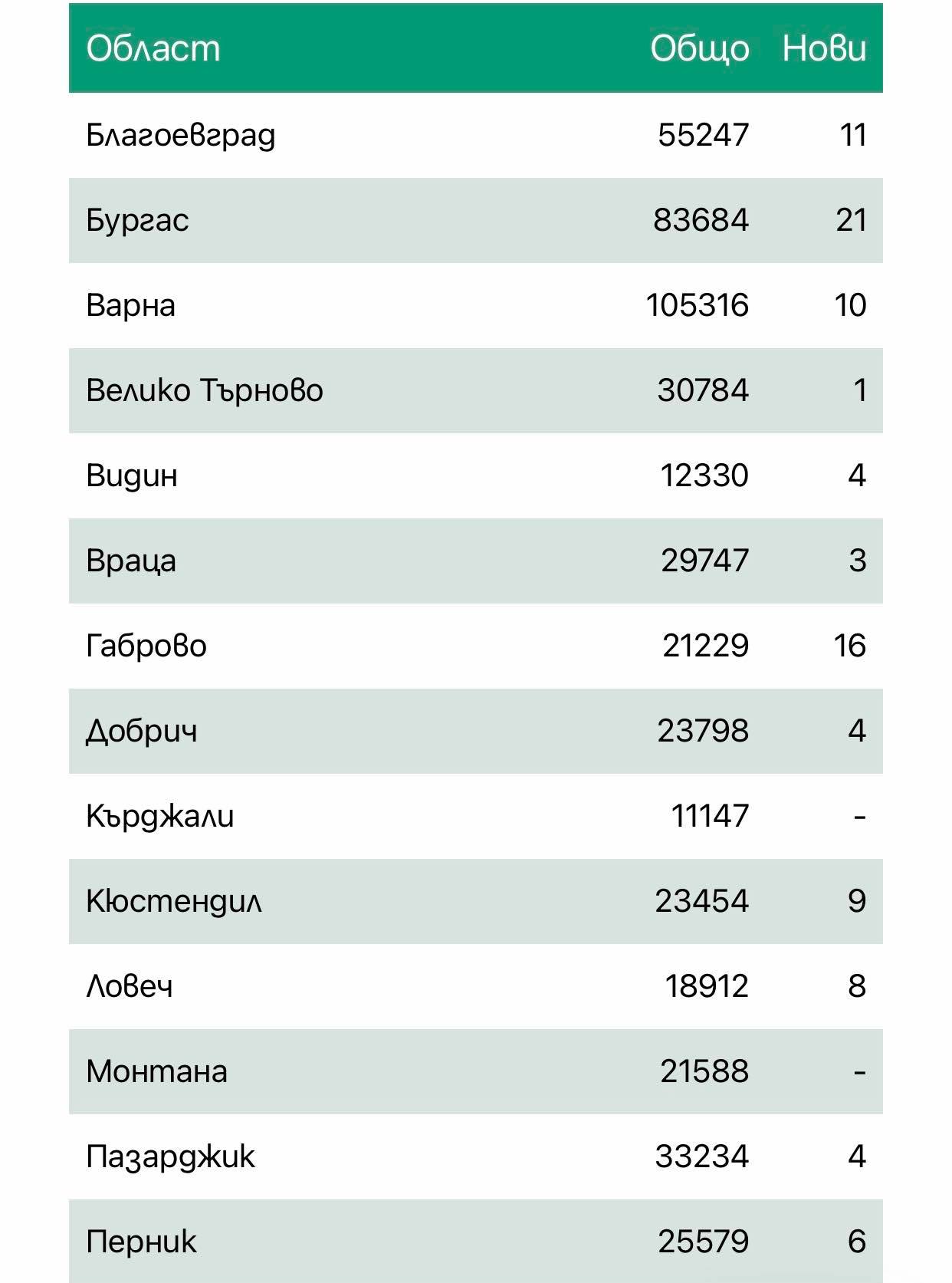 262 нови случаи на COVID-19 у нас са били доказани за последните 24 часа, сочат данните на Единния информативен портал.