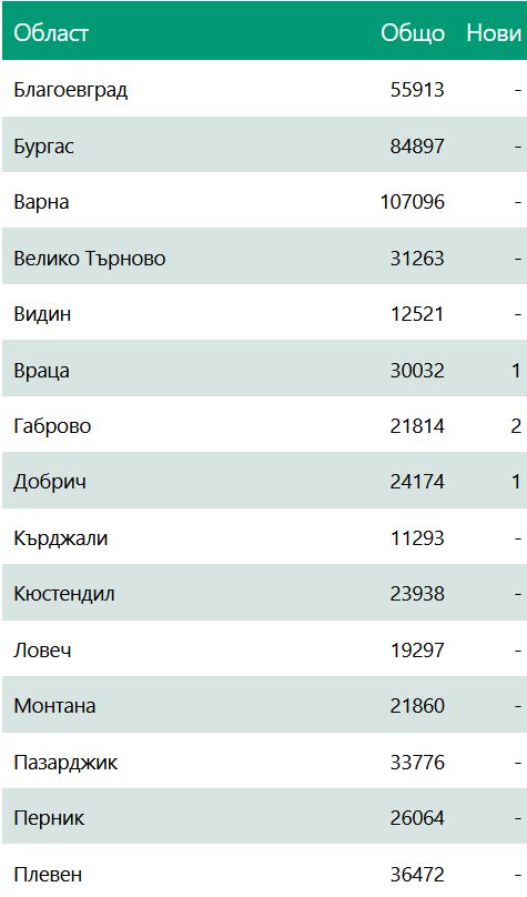Ето по какъв начин са разпределени новозаразените по области: