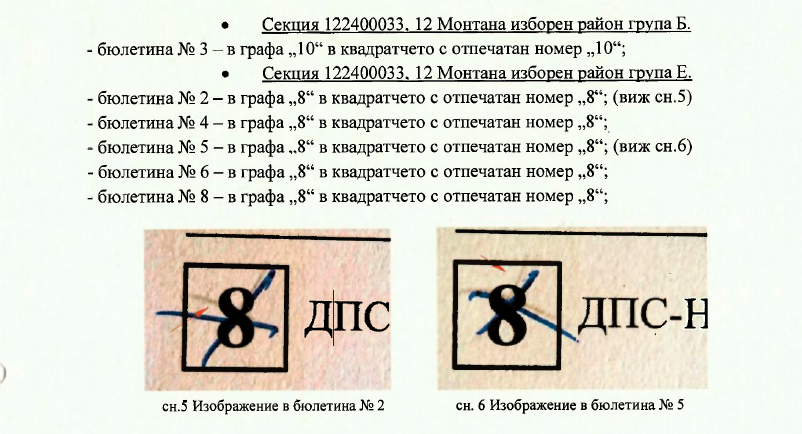 95 гласа в секция 060800027, 06 Врачански изборен регион,72 гласа в секция 122400033, 12 Монтана изборен регион, и106 гласа в секция 152400205, 15 Плевенски изборен регион.