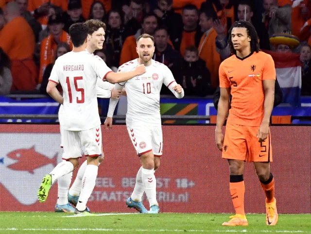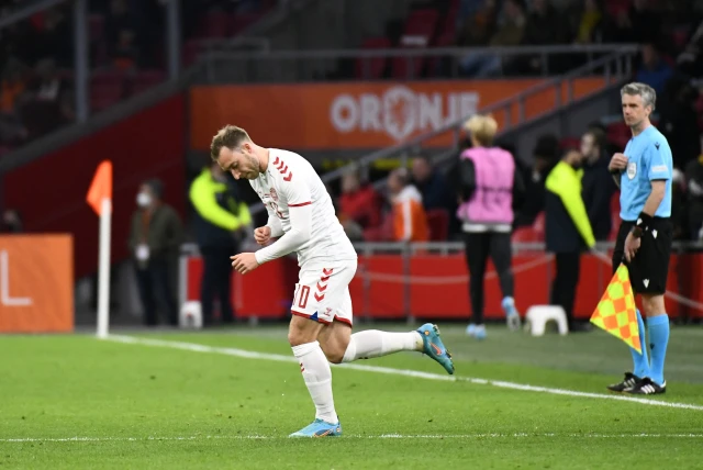 Ериксен, който на 12 юни 2021 година получи удар в срещата с Финландия и повече от 15 минути му беше осъществявана животоспасяваща намеса, игра 45 минути на стадиона в Амстердам.