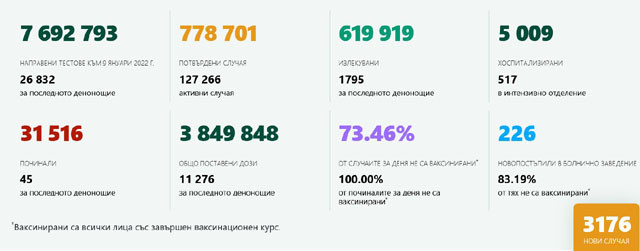 Заболелите до този миг от началото на пандемията са 778 701, излекуваните - 619 919, а умрелите - 31 516.