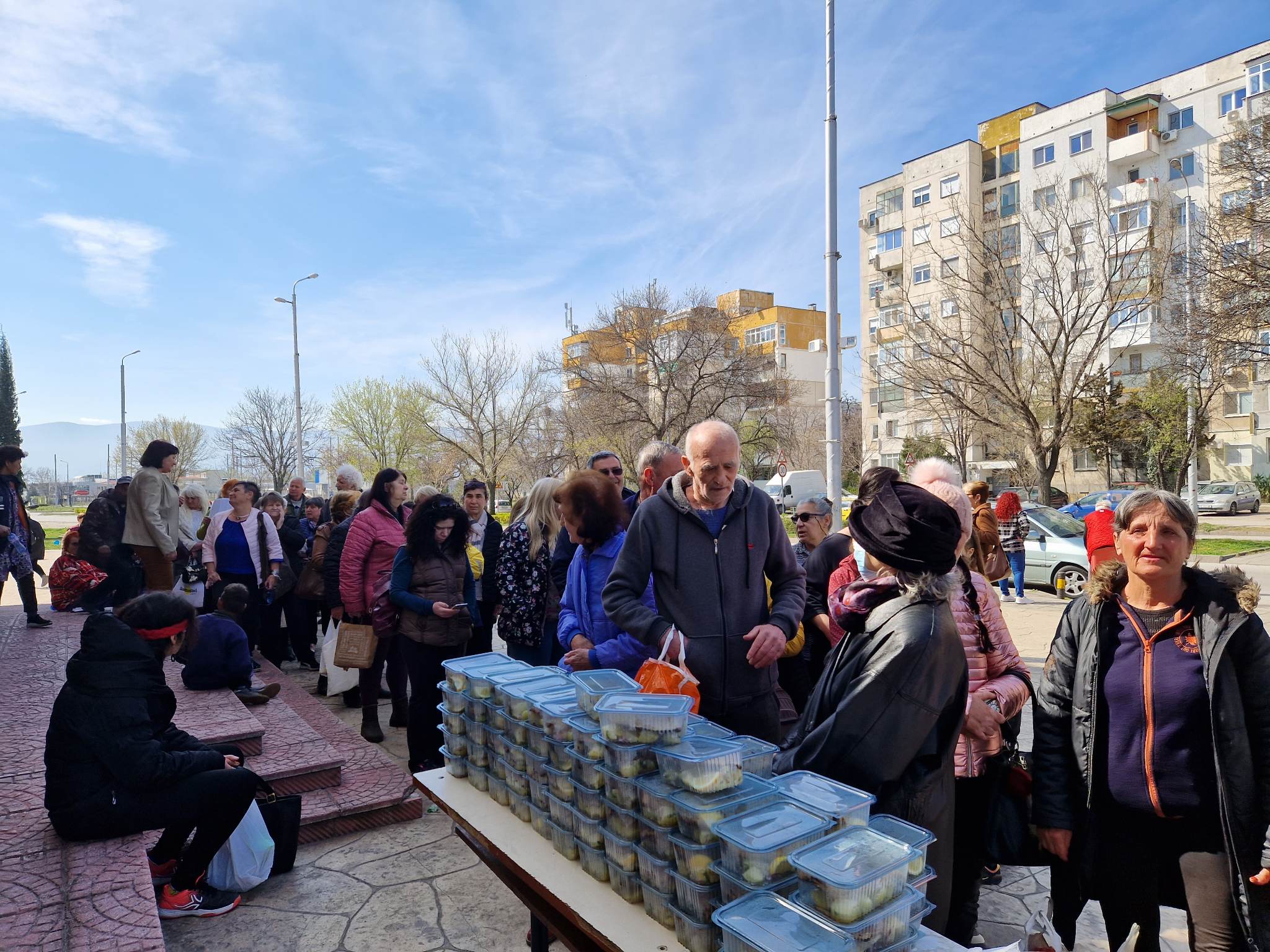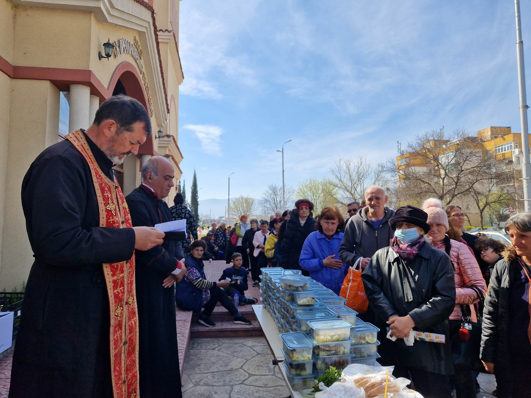 300 порции печена риба бяха раздадени през днешния ден пред храма в „ Тракия ” за огромния християнски празник Благовещение. След литургията отец Теодосий благослови ритуалната храна за здраве и благополучие. Миряните, пристигнали да се черкуват в храм „ Свето Преображение Господне ”, благодариха на донорите – семейство Серкови.