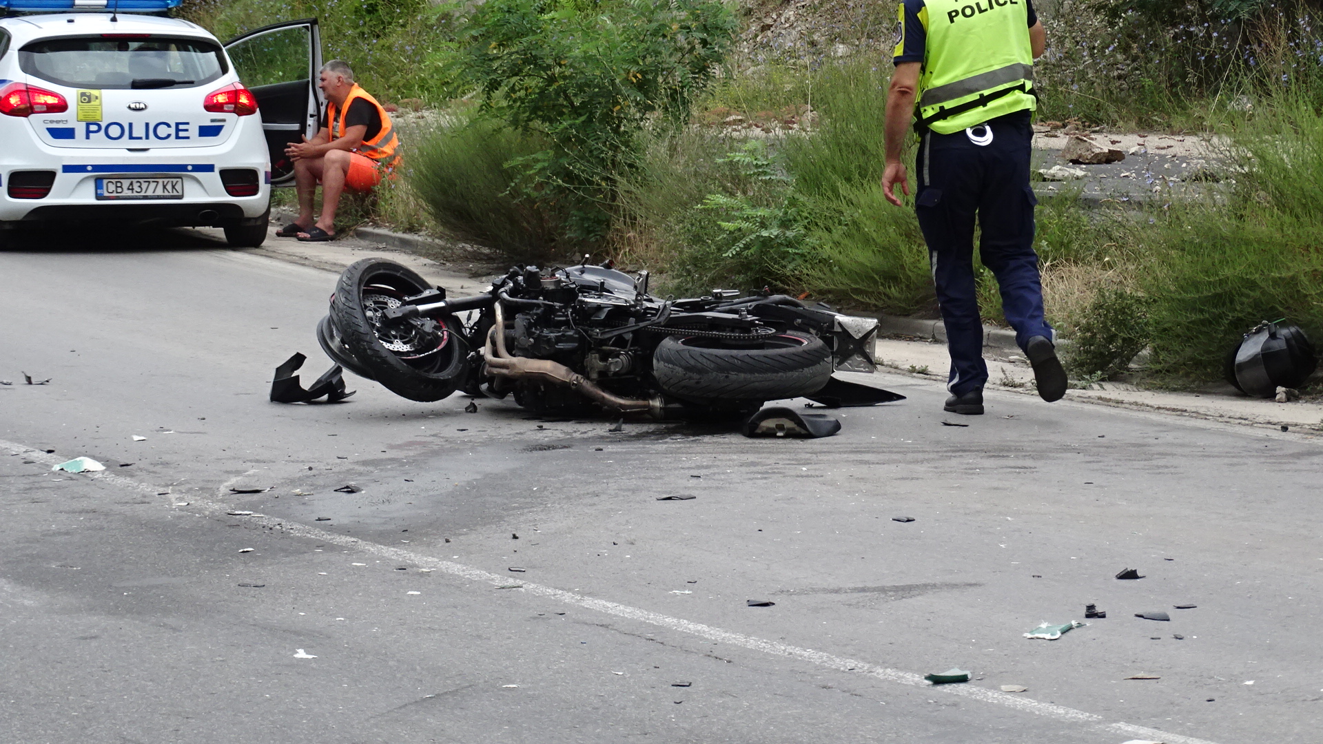 Според лидера на товарния автомобил, мотористът е навлязъл в лентата му. На мястото има части от предната ризница на тира, мигачи и други