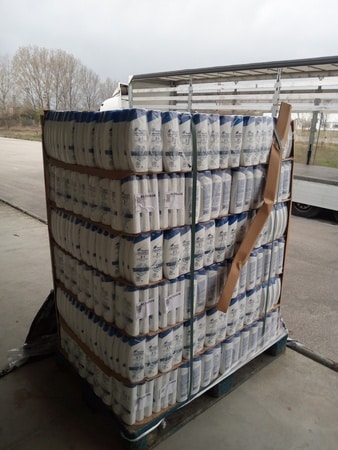 Общото количество открити и арестувани шампоани е 33 120 броя в 20 палета .