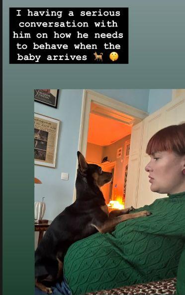 Бебето на Рут е момченце и ще се роди през април, а певицата занапред приготвя кучето си да бъде деликатно с новия член на фамилията.