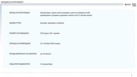 Допитването се извърши в деня на Европейските избори в региона на изборните секции от доброволци, които интервюираха емигрантите, а българите от целия свят отговаряха онлайн седмица преди този момент. Стремежът на неправителствената организация ДНК бе да разбере какво би предиздвикало българите да се приберат в България и какви са пречките при взимане на решението да се върнат назад.