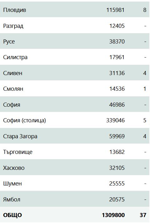 37 са новозаразените с COVID-19 за последното денонощие в България. Това показват данните на Единния информативен портал.