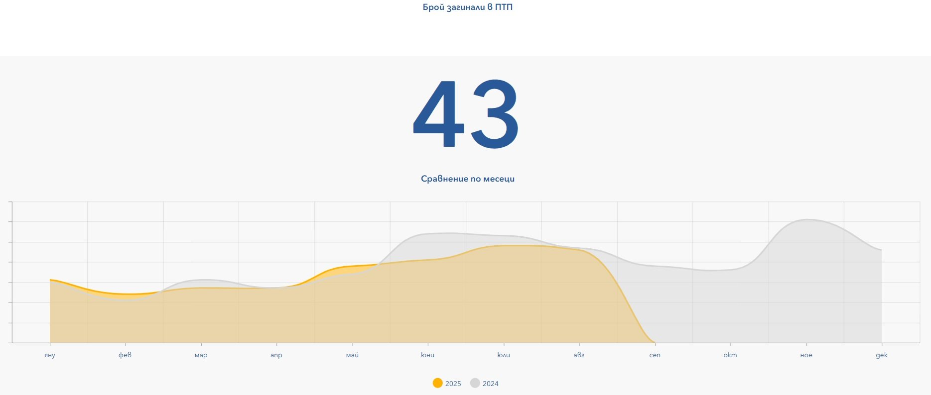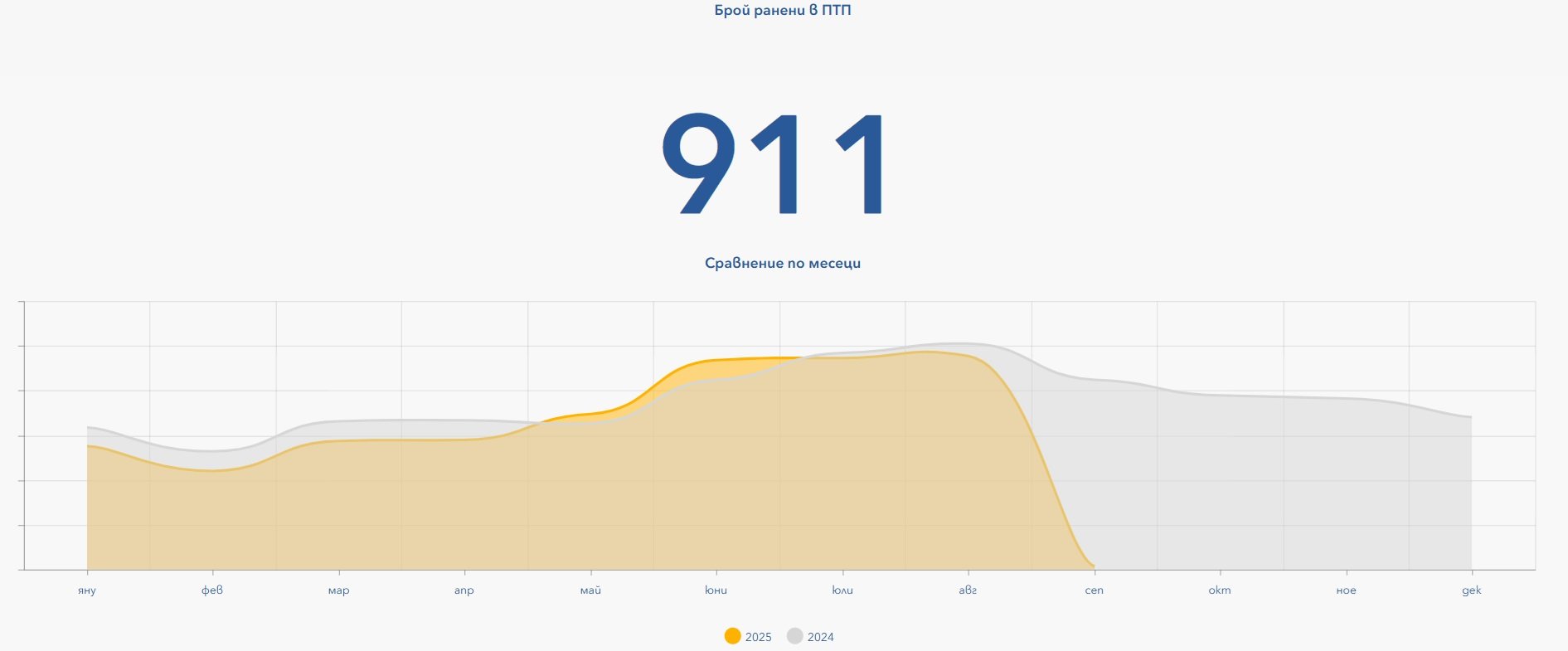 Данните за август още не са систематизирани, а интерактивната карта на ПТП, поддържана от Пътна полиция, демонстрира подравнен брой на починалите и дребен спад на ранените.